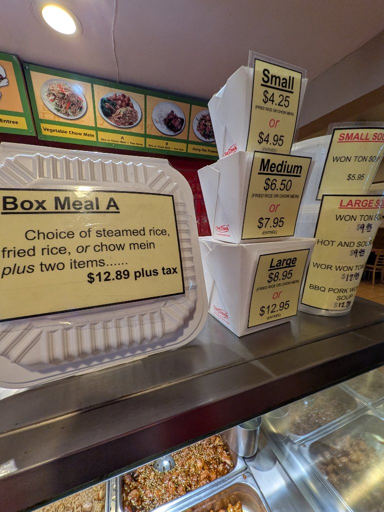 Many guests choose their meals from a combination-style box menu, perfect for enjoying a variety of tastes without fuss. Whether picking up a takeout or dining in, the menu supports a casual, friendly atmosphere where food feels like a satisfying, home-cooked meal. Soups like Wonton or Hot and Sour provide a soothing start, while appetizers such as crispy Vegetable Egg Rolls or BBQ Pork Buns offer a light yet flavorful introduction.
